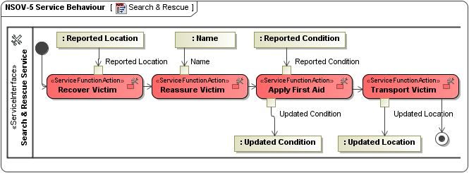 - NSOV-5 diagram for the Operational Activity flows. This diagram is based on the UML Activity diagram.