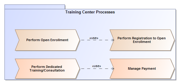 A Process Definition diagram is a tool for initial process analysis. The diagram allows you to draw business processes, group them into packages, and define the relations between those processes.
