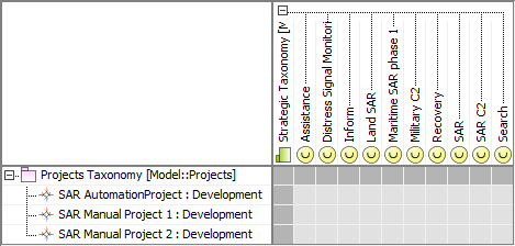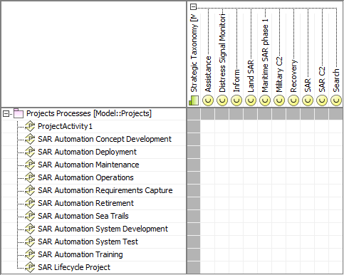 - Actual Projects to Capabilities Mapping Matrix which is a non-editable Dependency Matrix. Capabilities are used as row elements and Actual Projects are used as column elements.