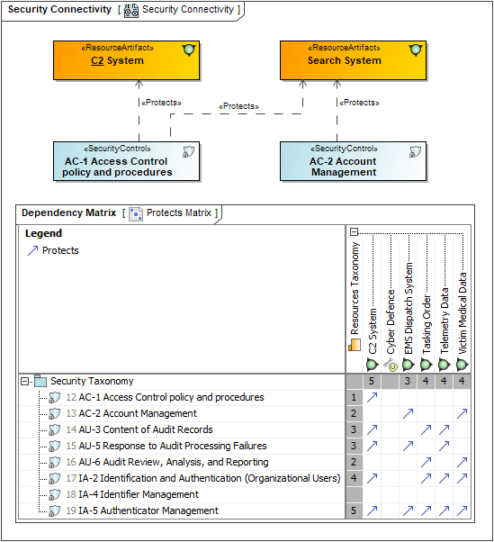 The Security Connectivity (Sc-Cn) domain addresses the security constraints and information assurance attributes that exist on exchanges across resources and across performers. It lists security exchanges across security assets; the applicable security controls; and the security enclaves that house the producers and consumers of the exchanges. Measurements can optionally be included.