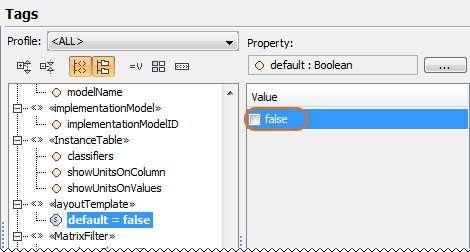 - Click the Create Value button to create a new value for the <<layoutTemplate>> tag, if it is not already created.