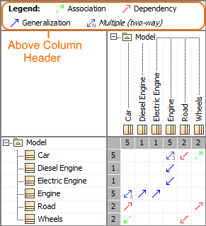 The legend shown above column header in the Dependency matrix.