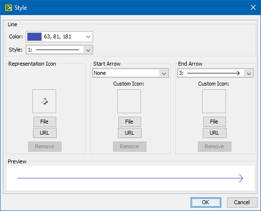 3. In the Style dialog, customize Color, Style, Start Arrow, End Arrow or set Representation Icon (see the table below for more information).