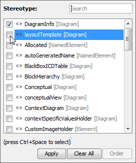 - In the Stereotype dialog, clear the layoutTemplate check box.