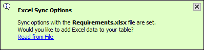 - You can also use a path variable to target the needed file, e.g., <excelSync>/Requirements.xlsx.