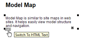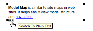 Drag the selected elements on the text box on the diagram pane. The hyperlinks to specifications of dragged elements are created on the text box. Click the link on the text box to open the Specification window of the selected element.