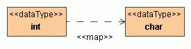 A type map is a stereotyped package, holding a collection of stereotyped dependencies. Stereotypes for building type maps are stored in the Model Transformation Profile.