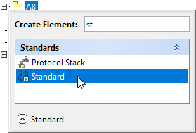 - Right-click the A8 package, and from the shortcut menu, select Create Element. Search for the Standard (or another appropriate element) and select it.