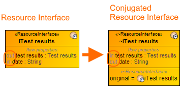 As shown in the figure below, the out/in Resource Interface is conjugated to ~in/out which has the same test results and date Flow Properties but in opposite directions.