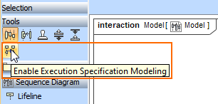 In the Sequence diagram palette, click the Enable Execution Specification Modeling button.