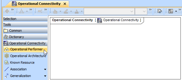 When the diagram is created, you can start creating the appropriate elements. An example is described using Operational Performer element, but the same is valid for other structural elements.