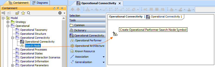 - In the modeling tool's main menu, click Create Diagram, search for Operational Connectivity and select it.