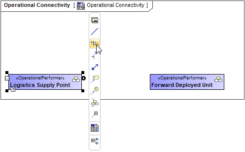 - On the diagram pane, select an Operational Performer and in the smart manipulator toolbar, click Operational Exchange. Click another Operational Performer to connect.