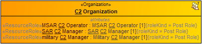 Once the Composition relationships is created, in the Containment tree, you can see the Composite element and note the Resource Roles (Part Properties) displayed within the namespace of the Composite element and how the element type and multiplicity is shown.