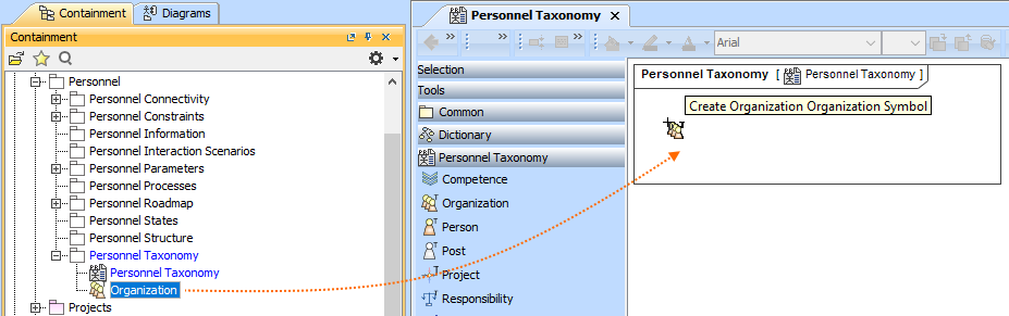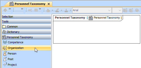 - In the modeling tool's main menu, click Create Diagram, search for Personnel Taxonomy and select it.