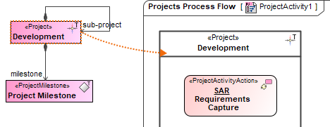 - Create Project Activity Actions or drop Project Activities from the Containment tree directly to the diagram pane.