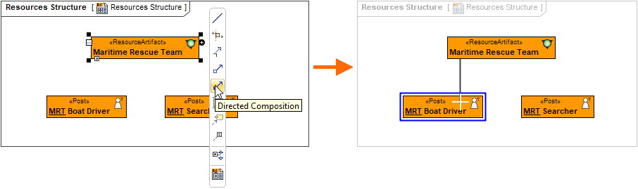When you have Resource Artifact created, you can start connecting them using the Composition and Aggregation relationships.