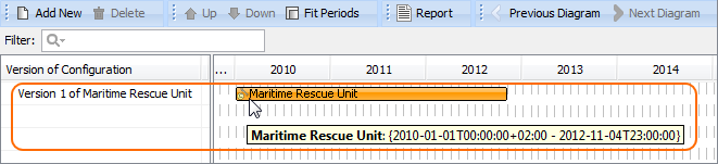 - In the diagram pane, select a Version of Configuration, and in the diagram toolbar, click Add New > Service.