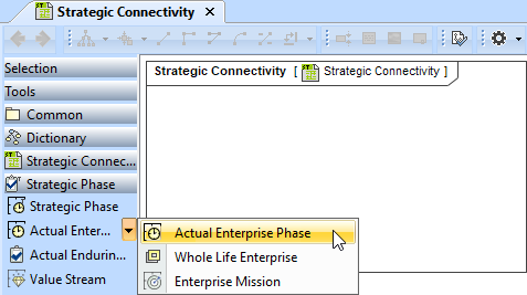 When the diagram is created, you can start creating the appropriate elements. An example is described using Actual Enterprise Phase element, but the same is valid for other Actual Strategic Phase elements.