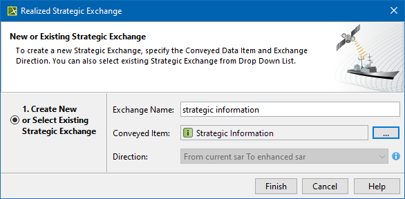 - Drag the selected Conveyed Item on to the needed Strategic Exchange on the diagram pane. The Realized Strategic Exchange wizard opens.