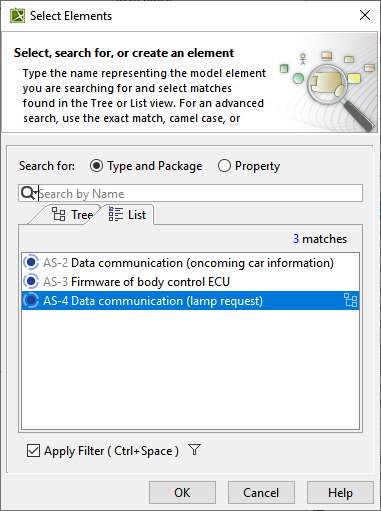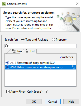 - If you select an already added system diagram element(s) to add as an asset, the Select Elements dialog will exclude the item to which the selected element was linked earlier.