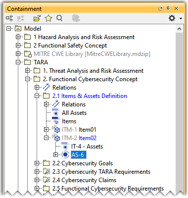 Name the created Asset in the Containment tree and press Enter. The Asset has the suffix AS, which denotes that the created element is an Asset; the number 6 indicates that it is the sixth Asset created.
