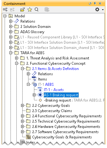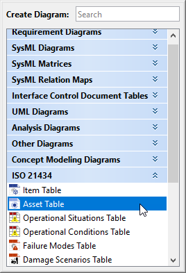 - In the dialog, expand ISO 21434 and select Asset Table.
