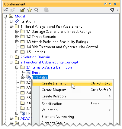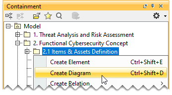 In the Containment tree, right-click Items & Assets Definition and select Create Diagram.