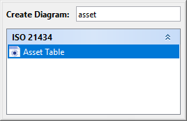 The Asset Table is displayed in the diagram pane of the modeling tool.