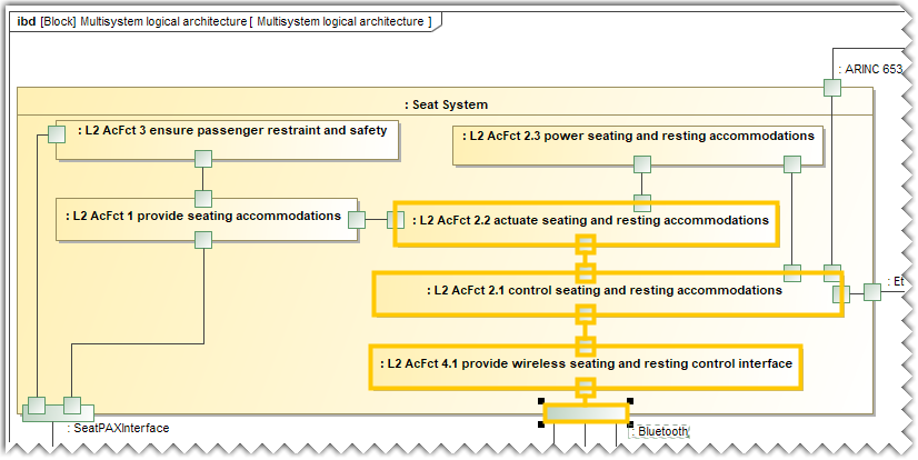 - Select the required elements in the Multisystem logical architecture IBD diagram.
