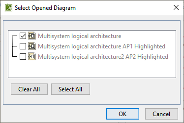 - In the Select Opened Diagram, select the required IBD diagram(s) and click OK.