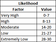 The following table shows the numerical values assigned to the Likelihood.