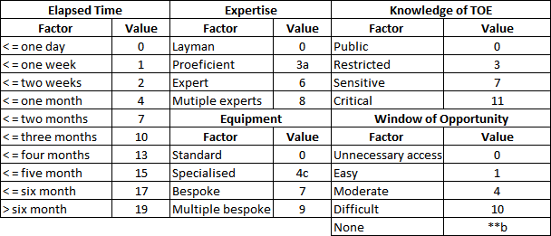 - Likelihood = Elapsed Time + Expertise+ Knowledge of TOE+ Window of Opportunity+ Equipment