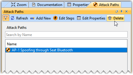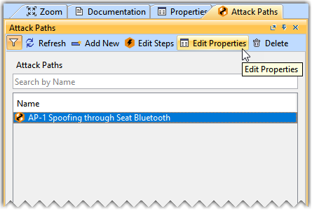 - In the Attack Path window, select the AP-1 Spoofing through Seat Bluetooth attack path and click Edit Properties.