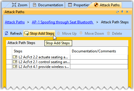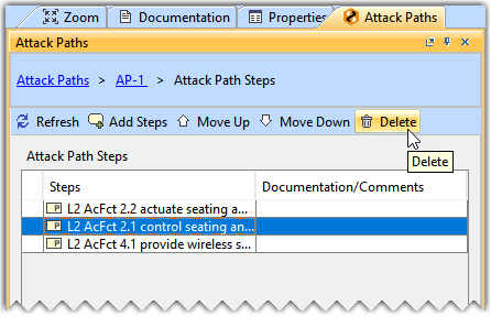 The Move Up, Move Down, and Delete buttons are only enabled when you select an Attack Path Step.