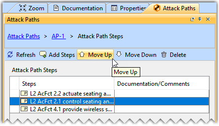 - Select the required Attack Path Step and click Move Up or Move Down as needed.