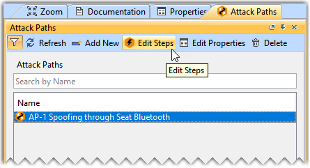 - In the Attack Path window, select the AP-1 Spoofing through Seat Bluetooth attack path and click Edit Steps.