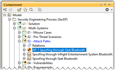 - In the Containment tree, name the newly created attack path as Spoofing through Seat Bluetooth.