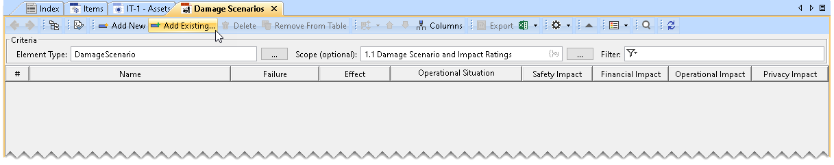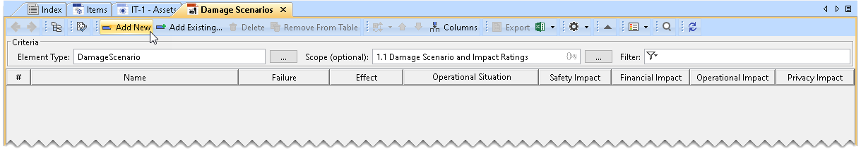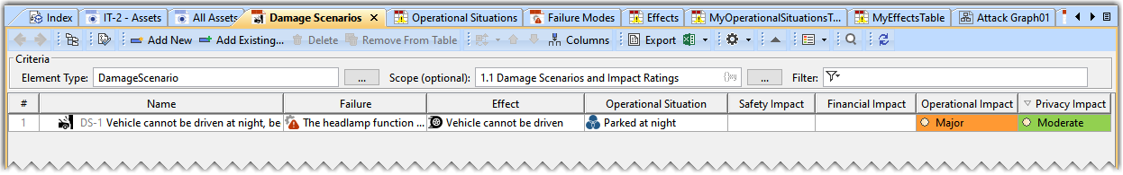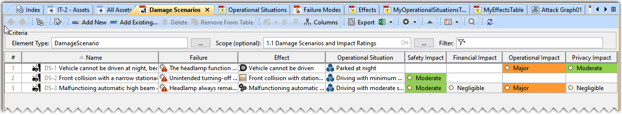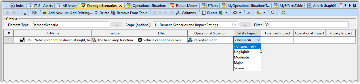 - All the Damage Scenarios sharing the same Effect get the same impact ratings. In such case, if you update any impact rating(s) for one Damage Scenario, the impact rating(s) for other Damage Scenarios are updated.