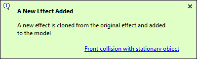 - When you update the SFOP Impact ratings of the damage scenario, a cloned Effect element is created in your local project and is visible in the Containment tree. The following notification message is displayed with the cloned Effect element link at the bottom right corner of the modeling tool.