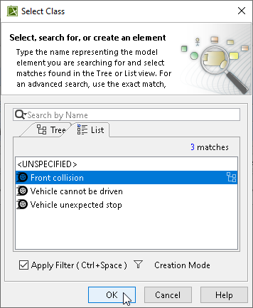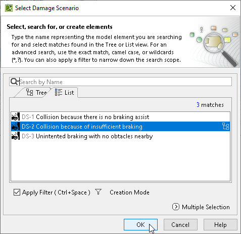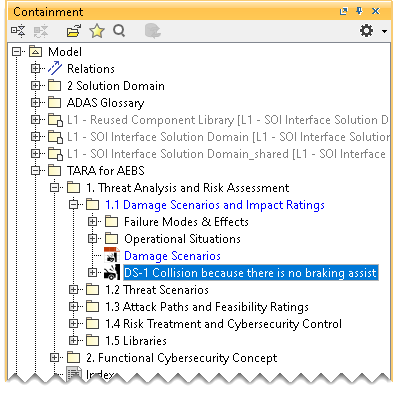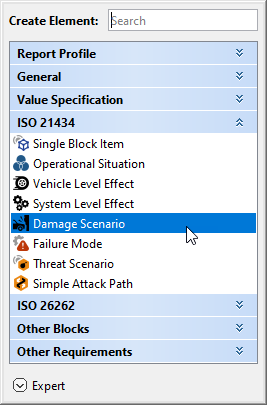 - In the dialog, expand ISO 21434 and select Damage Scenario.