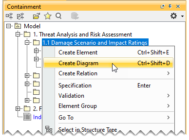 - In the Containment tree, right-click Damage Scenario and Impact Ratings and select Create Diagram.