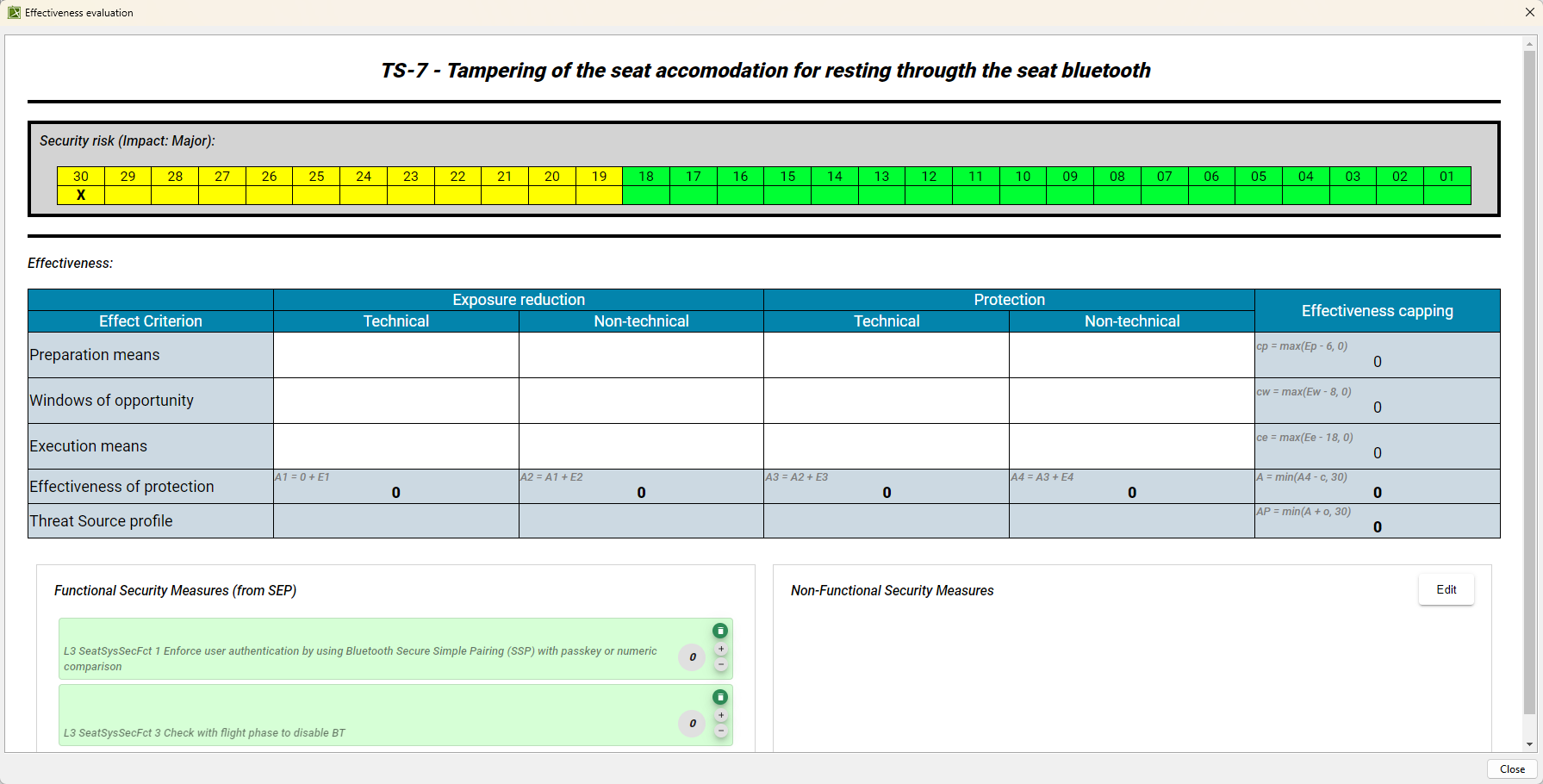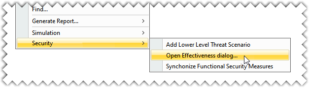 - After implementing security measures in the Post Threat Scenario Table, right-click the affiliated Lower Threat Scenario and select Security> Open Effectiveness dialog....