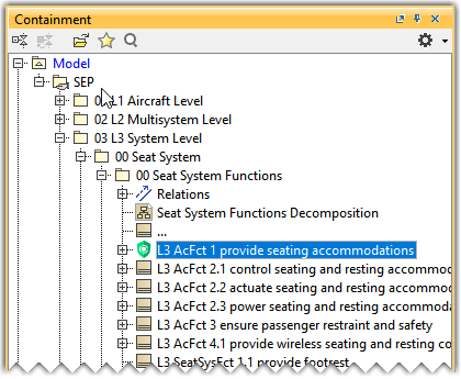 The L3 level security function is defined as a functional security measure in the Containment tree. You can also assign the Stereotype to any L3 level security function with the aid of the Specification dialog.