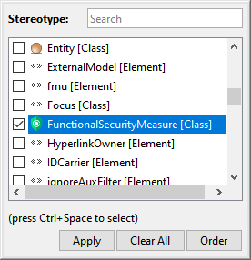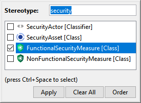 In the dialog, selectFunctionalSecurityMeasure[Class] and click Apply.