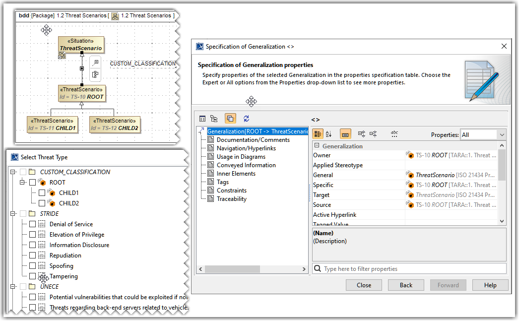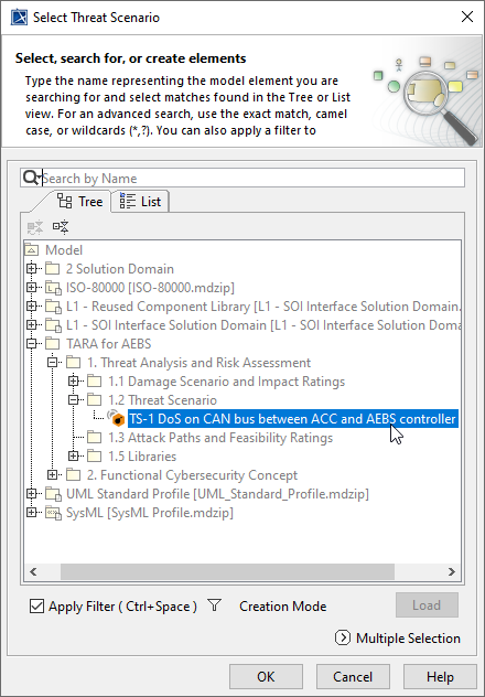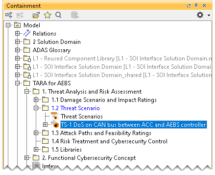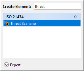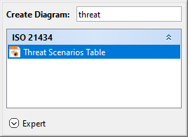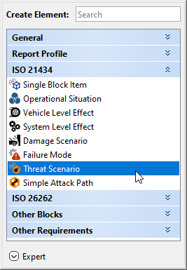 - In the dialog, expand ISO 21434 and select Threat Scenario.