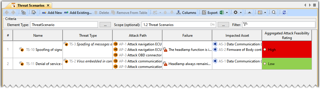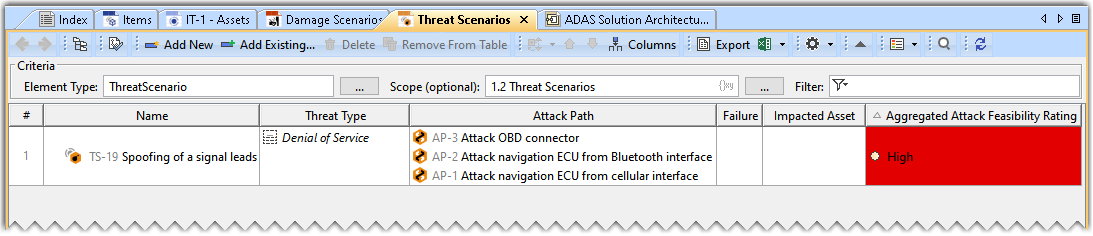 The Failure is now shown in the Threat Scenario Table.