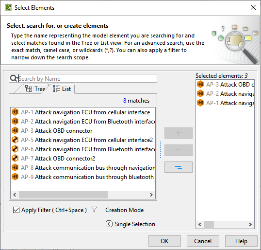 - From the Select Elements dialog, select Attack Path.