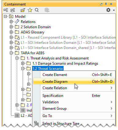 - In the Containment tree, right-click Threat Scenario and select Create Diagram.