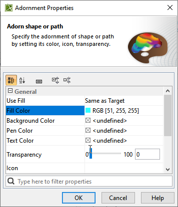 . - In the Adornment Properties dialog, specify the Fill Color property and click OK.